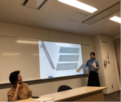 李嵬松同学的发言主题是“中国公司法中的刺破公司面纱制度”,她将中国公司法中的相关制度规定以及实践中的适用和学理上的观点等都做了详尽的介绍,理论与实践紧密结合。大家纷纷表示对这一制度有了更加深刻的认识。张春旭、孙柏林、朱思颖、吴昊、王焕然、王若楠等其他六位同学也分别就中日公司法中的其他不同制度作出了比较分析。在主题发言过后,中日同学就相关话题继续进行了深入的讨论。尽管英语都不是大家的母语,但是大家都有同样的法学知识背景和同样的学习积极性。在老师的主持和带领下,大家对公司法的不同制度有了更深更广的认识,同时也更加强化了学习热情。