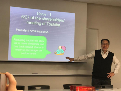2018年11月20日下午,师生们前往早稻田大学,加入大塚英明教授用英文讲授的公司法的课堂学习。大塚教授的讲授激情澎湃,深入浅出,将公司法法条用鲜活的案例一一呈现,逻辑流畅,思维缜密,仅在短短的时间内就让大家对日本公司法的法条有了深刻的理解。
