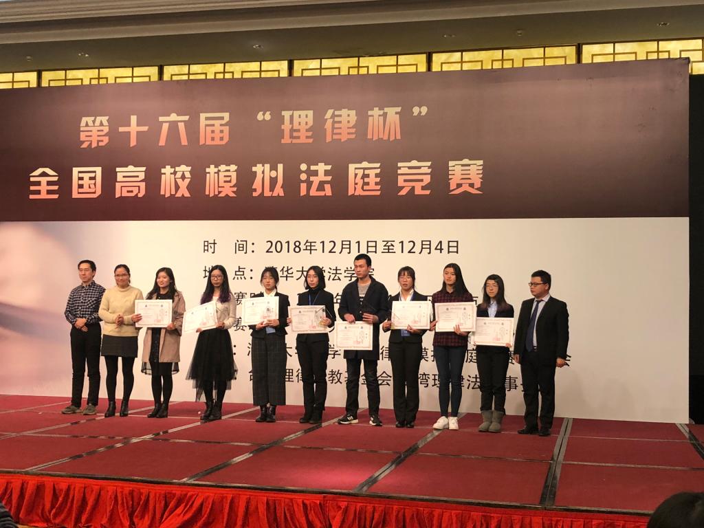 2018年12月4日,第十六届“理律杯”全国高校模拟法庭竞赛在清华大学必赢线路检测中心落下帷幕。必赢官网代表队凭借优异的表现荣获季军,连一蔓同学获得优秀辩手称号,刘晨同学获得最佳辩手称号。