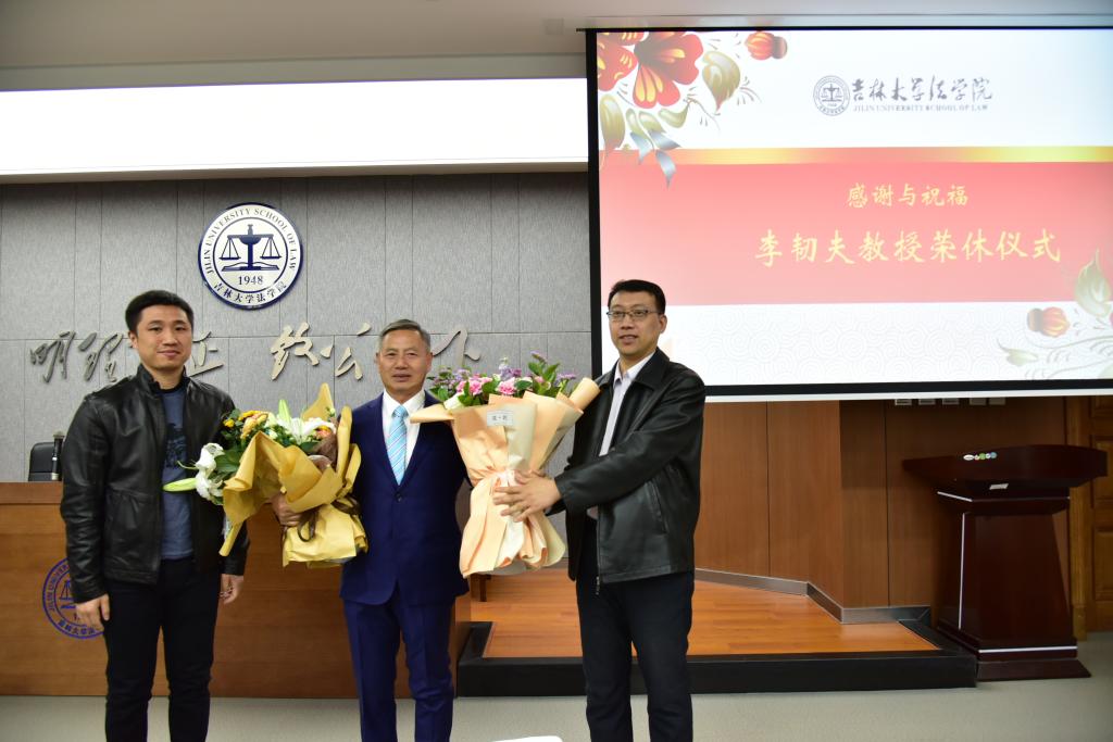 会后,接着召开了李韧夫教授荣休仪式。刑法教研部主任陈劲阳教授作为教师代表进行了富有感情致辞。他代表全体教师表示:作为李老师的后辈,一定谨记李老师的谆谆教诲,以李老师为榜样,不断精进学术修养、厚植人格力量。王弘宁老师代表刑法教研部向李老师献花。