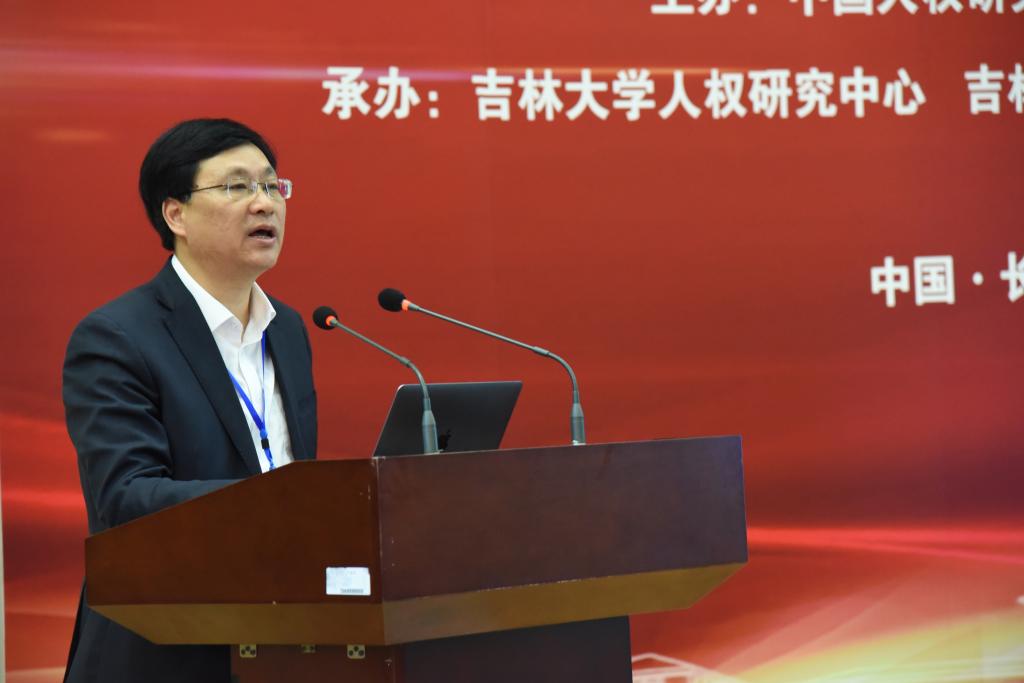 中国人权研究会常务理事张国斌做了题为《深化国际交流合作,构建人权发展共同体》的主题发言。张国斌理事从外交的角度阐述了人权议题的含义,强调在人权领域,外交工作十分重要。应当加强国际交流合作,通过外交方面的努力,尤其是民间智库、民间团体的往来,促进人权发展共同体的构建。