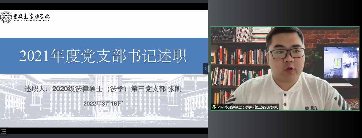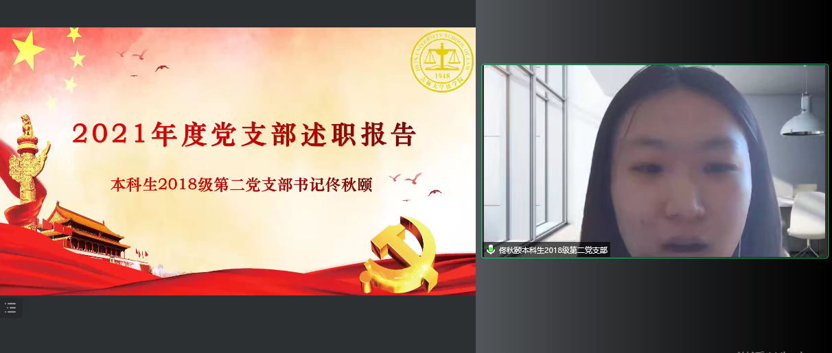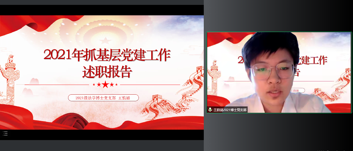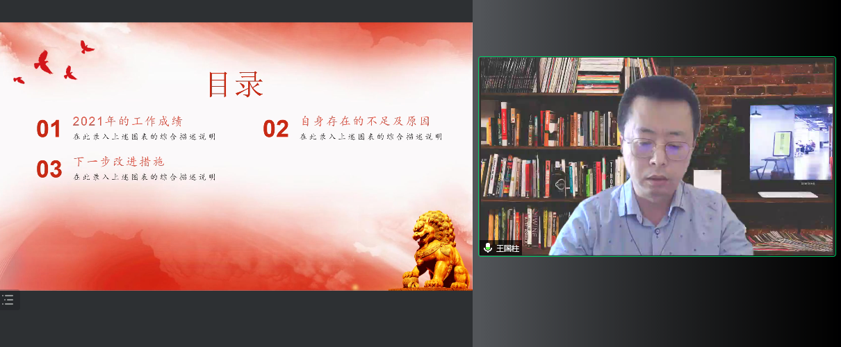 会上,4位教工党支部书记和7位学生党支部书记以“进一步贯彻落实习近平新时代中国特色社会主义思想,加强基层党建工作”为主题,结合各党支部特色,围绕党史学习教育系列活动的落实情况、履行基层党建第一责任人职责情况、党建工作与教学深度融合情况、落实立德树人根本任务情况、“新时代e支部”建设情况和疫情防控等几个方面对2021年度工作开展的做法与成效进行汇报,同时,检视存在的问题与原因,规划下一步的举措与目标。述职内容详实,条理清晰,图文并茂,展现出求真务实的工作作风。