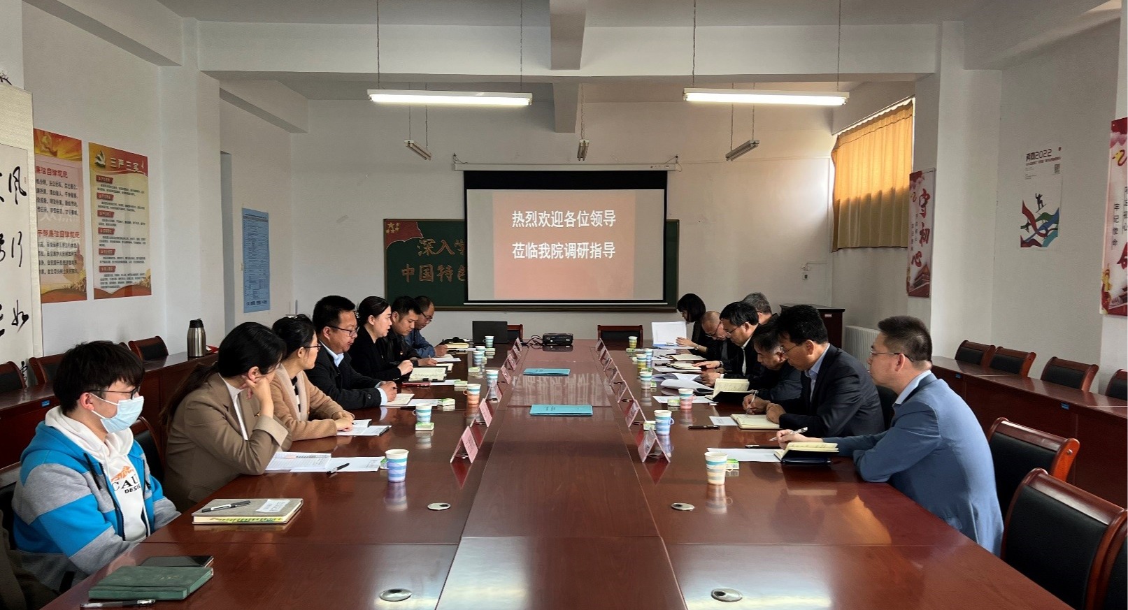 翁维素校长一行认真听取学院领导班子的汇报,不时与大家交换意见和看法,并与参会人员就本院特色工作、科研成果、人才引进、青年教师发展等议题进行了深入交流。