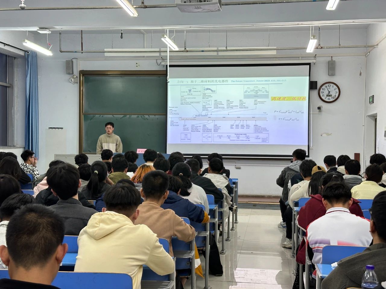 讲座中,王文海老师围绕二维材料的基础知识展开,系统讲解了其核心原理及各类光电器件的功能。同时结合前沿应用案例,重点介绍了光电器件设计与信息处理的关键技术,并展望了该领域的未来发展趋势。