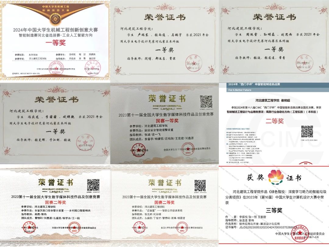 在全院师生共同努力下,SUNBET申博官网形成了踏实进取的学术风气和严谨求实的治学精神。学院高度重视大学生创新能力培养,目前已建立并运行良好的产教融合基地20余个,同时不断完善科创竞赛工作体系,建立了工业机器人编程、科技智造、人工智能等5个兴趣小组,以及特色社团电子爱好者协会和学生创新创业部,并配置指导老师,为学生参与科创竞赛提供了技术和组织支持。坚持“赛事育人”,学生踊跃参加大学生电子竞赛、嵌入式系统及单片机应用等科技创新活动,学生科技活动基本普及,实现了以赛促学、以赛促教,着力提高学生动手能力及创新思维。近几年,学院学生在全国大学生数字媒体科技作品及创意竞赛中,荣获国家级一等奖、二等奖多项;在全国大学生电子竞赛中,荣获省级一等奖多项;在各级各类比赛中喜获佳绩,连续多年成功申报多项全国大学生创新创业训练计划项目,学院学生出色的创新精神与实践能力深受用人单位好评。