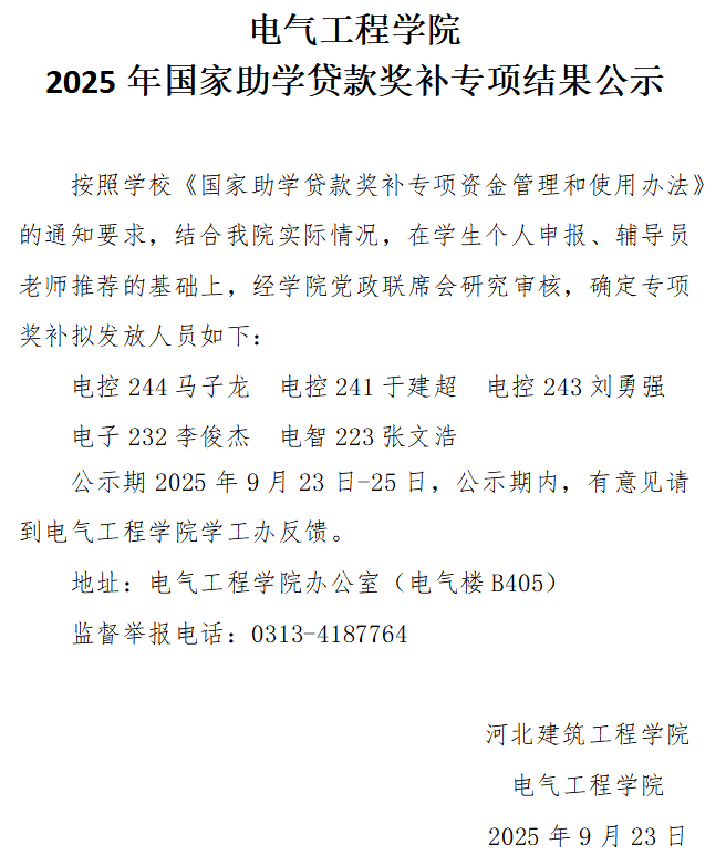 SUNBET申博2025年国家助学贷款奖补专项结果公示