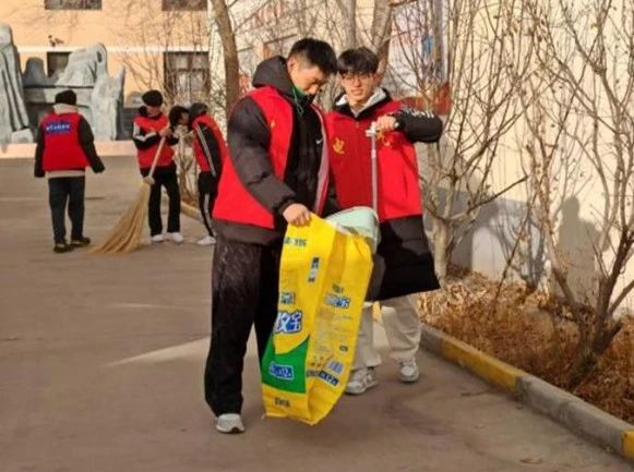 进入养老院,志愿者们迅速分工协作,男生们负责清理庭院落叶、搬运走廊杂物,女生们则专注擦拭门窗桌椅。经过大家的共同努力,养老院整体环境焕然一新。