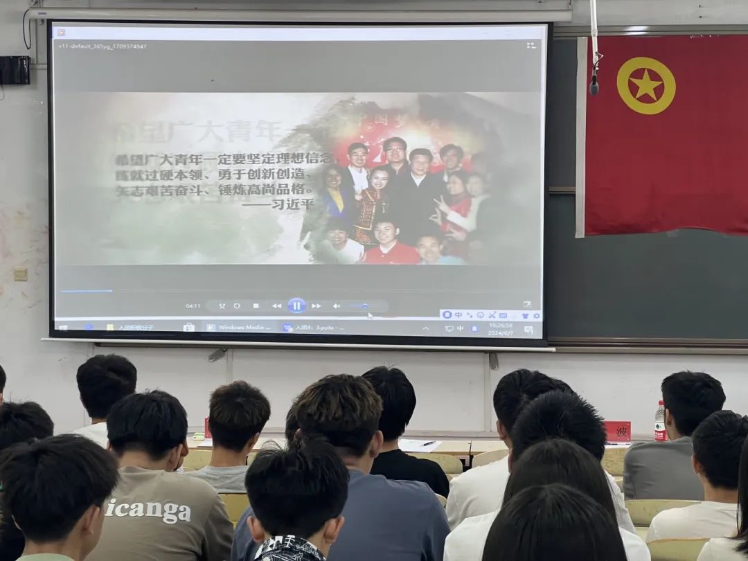 随后,全体人员观看学习了由共青团中央制作的《入团第一课》。该课程通过生动的故事和案例,向学员们展示了共青团的历史、性质、任务以及团员的权利和义务,让学员们对共青团有了更深入的了解,加入共青团的信念也更加坚定。