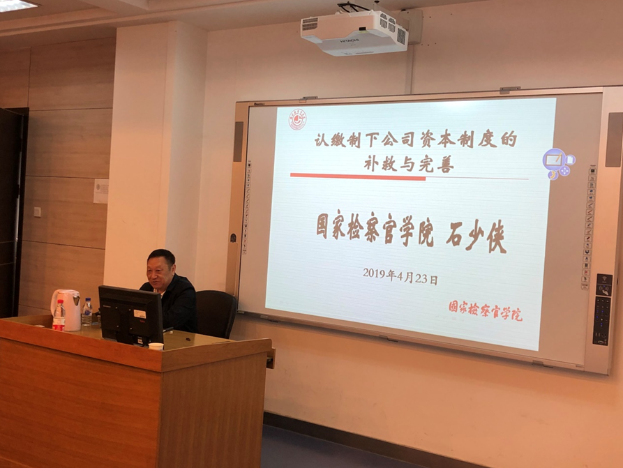 2019年4月23日,应必赢线路检测中心邀请,中国法学会商法学研究会副会长、吉林财经大学必赢线路检测中心名誉院长、国家检察官学院原院长石少侠教授在经信教学楼二楼D区205室做了主题为“认缴制下公司资本制度的补救与完善”的讲座。讲座由必赢官网胡晓静教授主持,商法教研室于莹教授、王艳梅教授、温双阁教授、徐晓副教授、邢丹老师出席,必赢线路检测中心学生50余人参加。